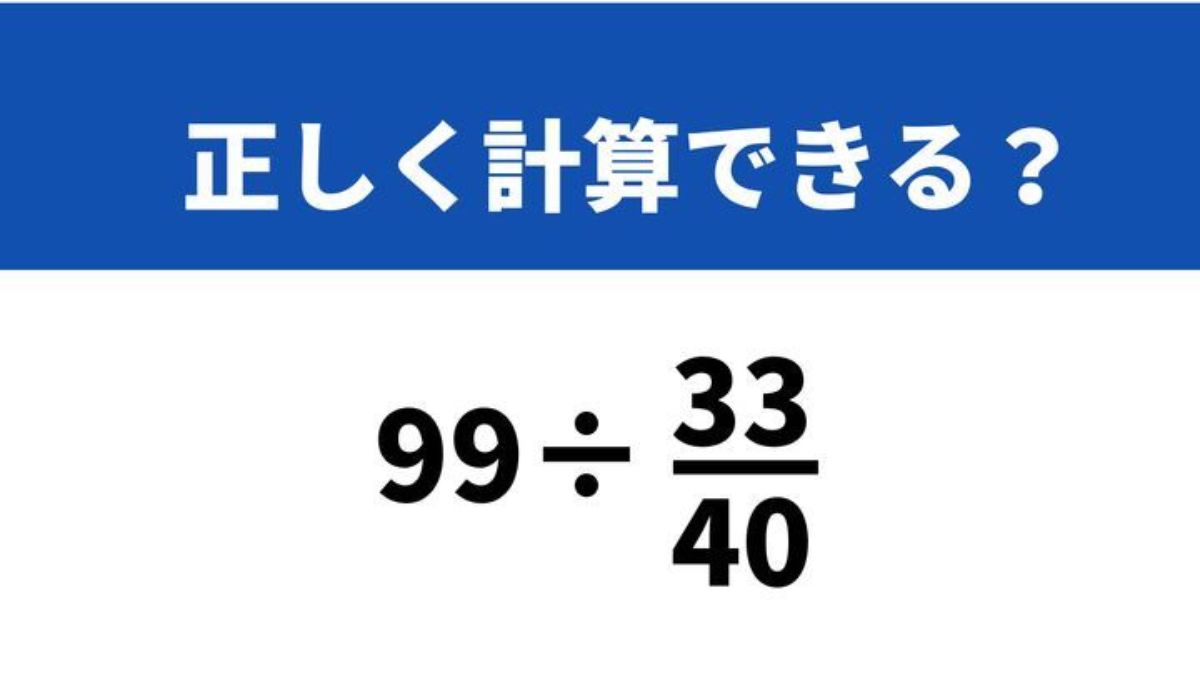 日常で分数の計算を思い出す機会は少ないですよね。特に整数÷分数のようなパターンは、学生時代以来触れていない人も多いはずです。そんな中、「99÷(33/40)」というシンプルな問題がSNSで話題に。電卓なしで正しく解けるでしょうか?