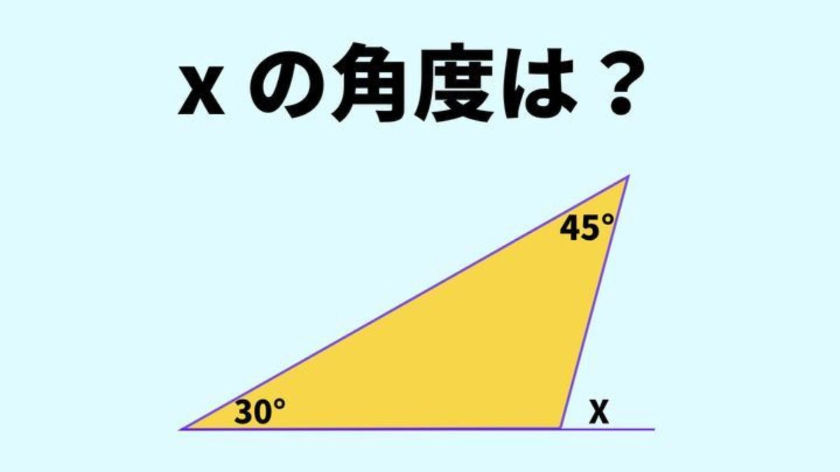 数学の基本問題が、大人になると意外に手こずるものをご存知ですか? 特に三角形の外角に関するシンプルなクイズは、SNSで話題沸騰中です。内角が30°と45°与えられた三角形で、外角xを求めるこの問題。学校以来忘れていた外角の定理を思い出すきっかけにぴったりです。